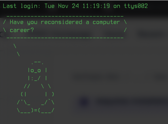 ### tuxsay/cowsay & fortune setup #i="$(fortune -s computers)" && cowsay -f tux $i && say $i fortune -s computers | cowsay -f tux
